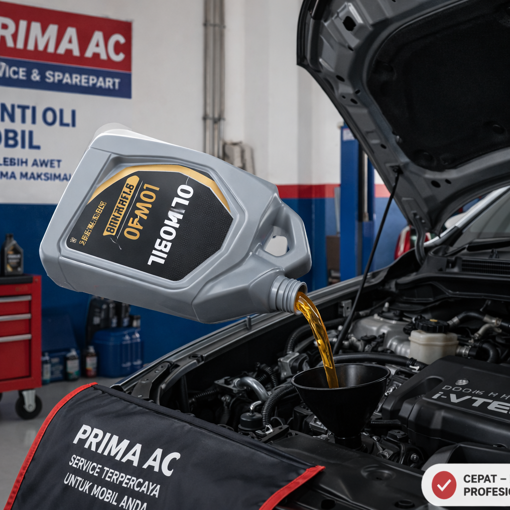 Jaga performa mesin mobil kamu tetap prima sekarang juga! Jangan tunggu sampai mesin bermasalah—segera ganti oli mobil secara rutin. Percayakan perawatan kendaraanmu ke Prima AC yang memberikan pelayanan profesional dan terpercaya. Yuk, ganti oli mobil sekarang agar mesin tetap halus, irit, dan tahan lama!