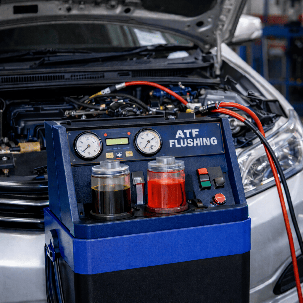Flushing oli matic adalah proses penggantian oli transmisi secara menyeluruh dengan menggunakan alat khusus, sehingga seluruh oli lama yang berada di dalam sistem transmisi dapat dikeluarkan secara maksimal, termasuk oli yang tersimpan di dalam torque converter serta di saluran-saluran kecil yang sulit dijangkau. Dengan demikian, proses ini tidak hanya sekadar mengganti oli, melainkan juga memastikan bahwa sisa-sisa cairan lama benar-benar terangkat dari seluruh bagian sistem.